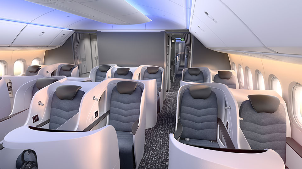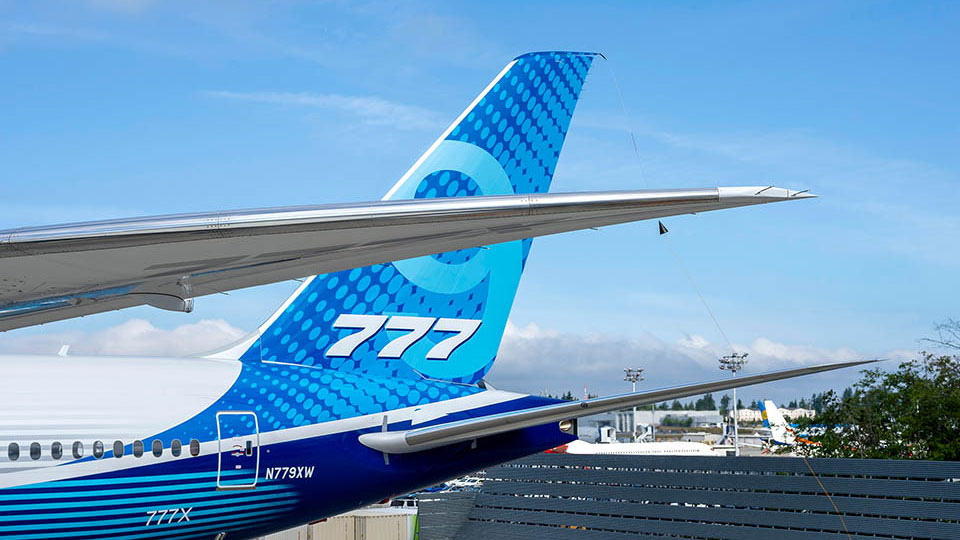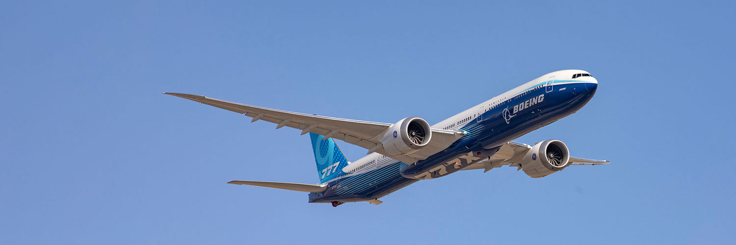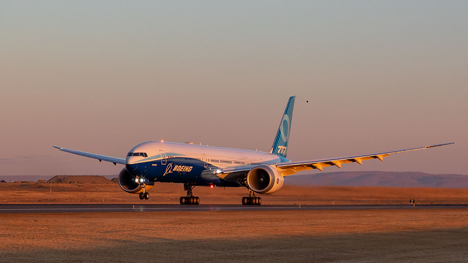 The Boeing 777X family is designed to maximize efficiency and environmental performance while providing an exceptional experience. With new breakthroughs in aerodynamics and engines, the 777-9 will achieve 20% lower fuel use and emissions and a 40% smaller noise footprint than the airplanes it will replace, with 10% lower operating costs than the competition. A true family, the 777X will offer low-risk, profitable growth, high reliability and seamless integration with the 777 and 787 Dreamliner families for even more flexibility. With a spacious wide cabin, new custom architecture and innovations from the 787 Dreamliner, the 777X will offer the flight experience of the future.