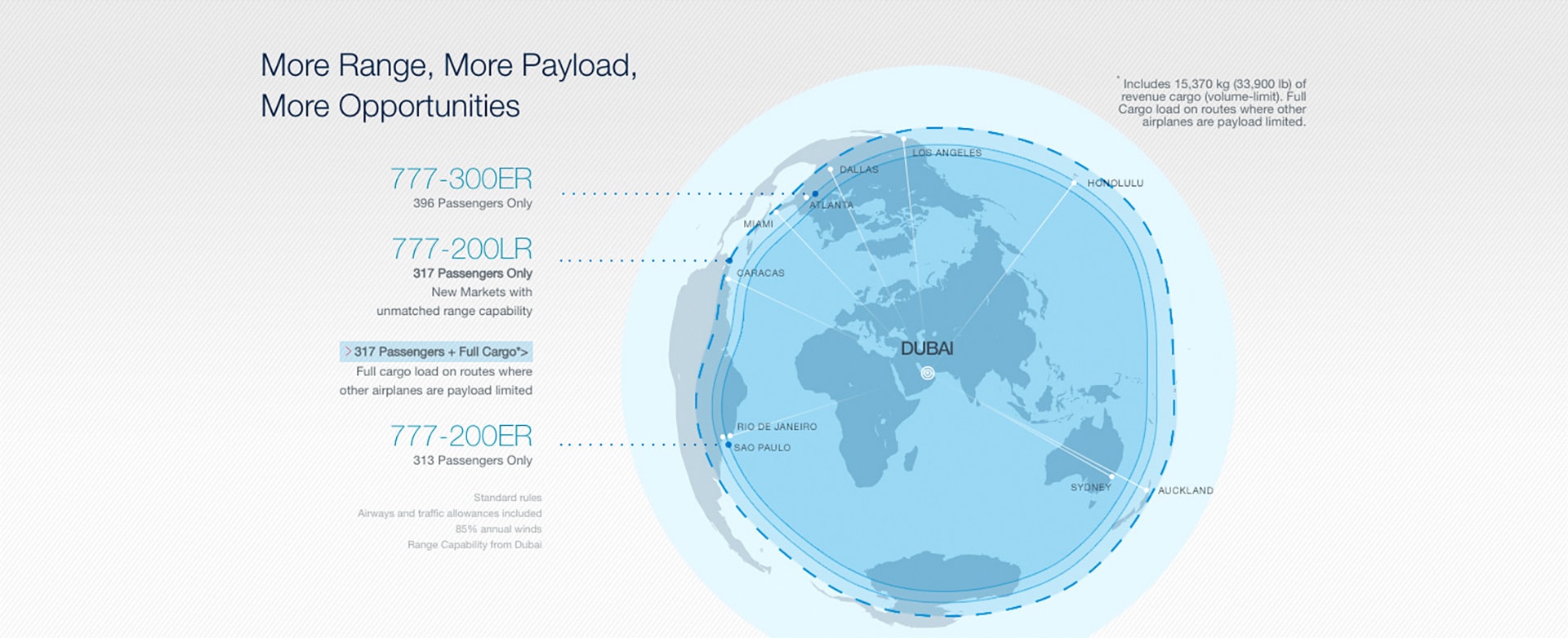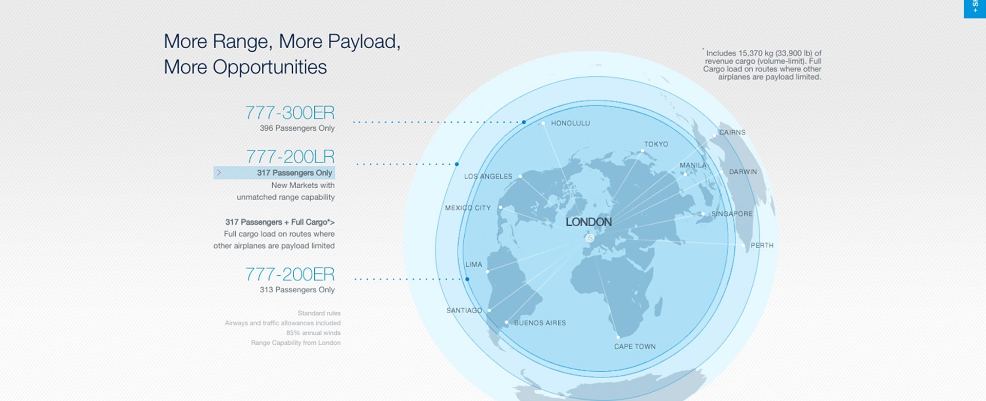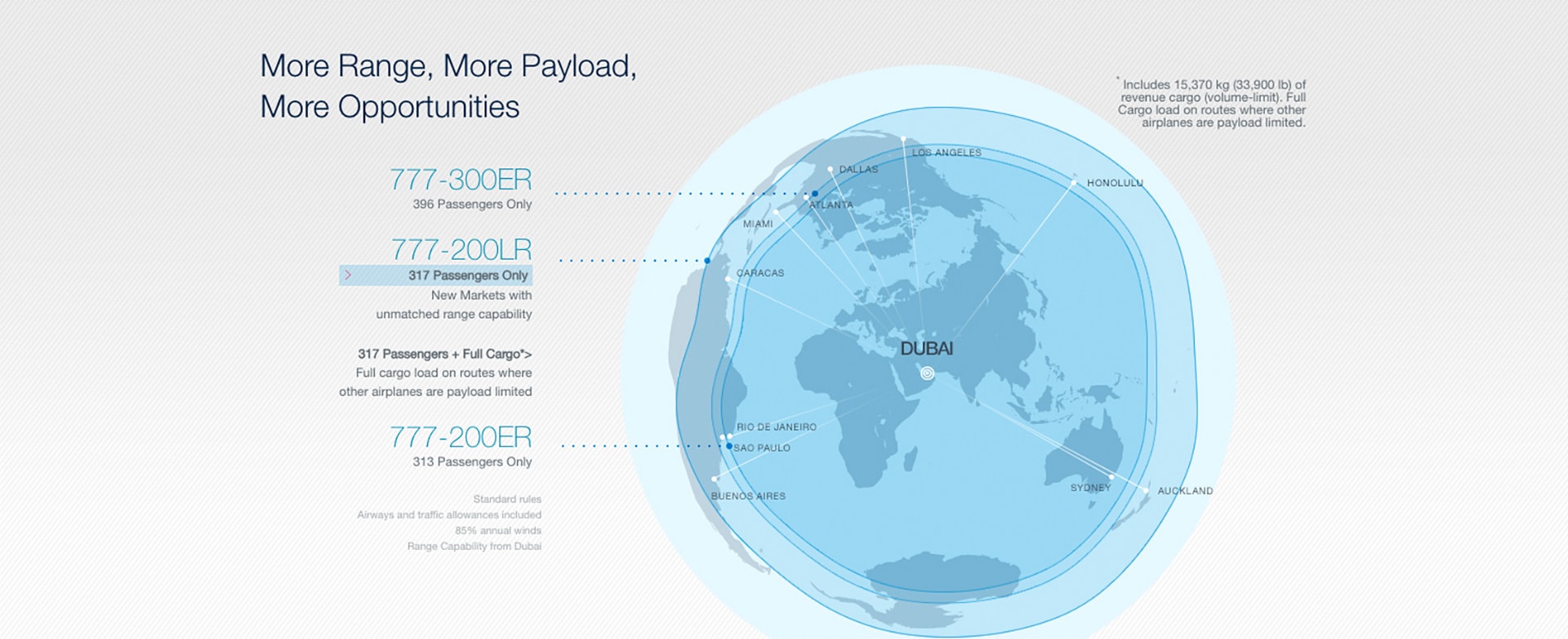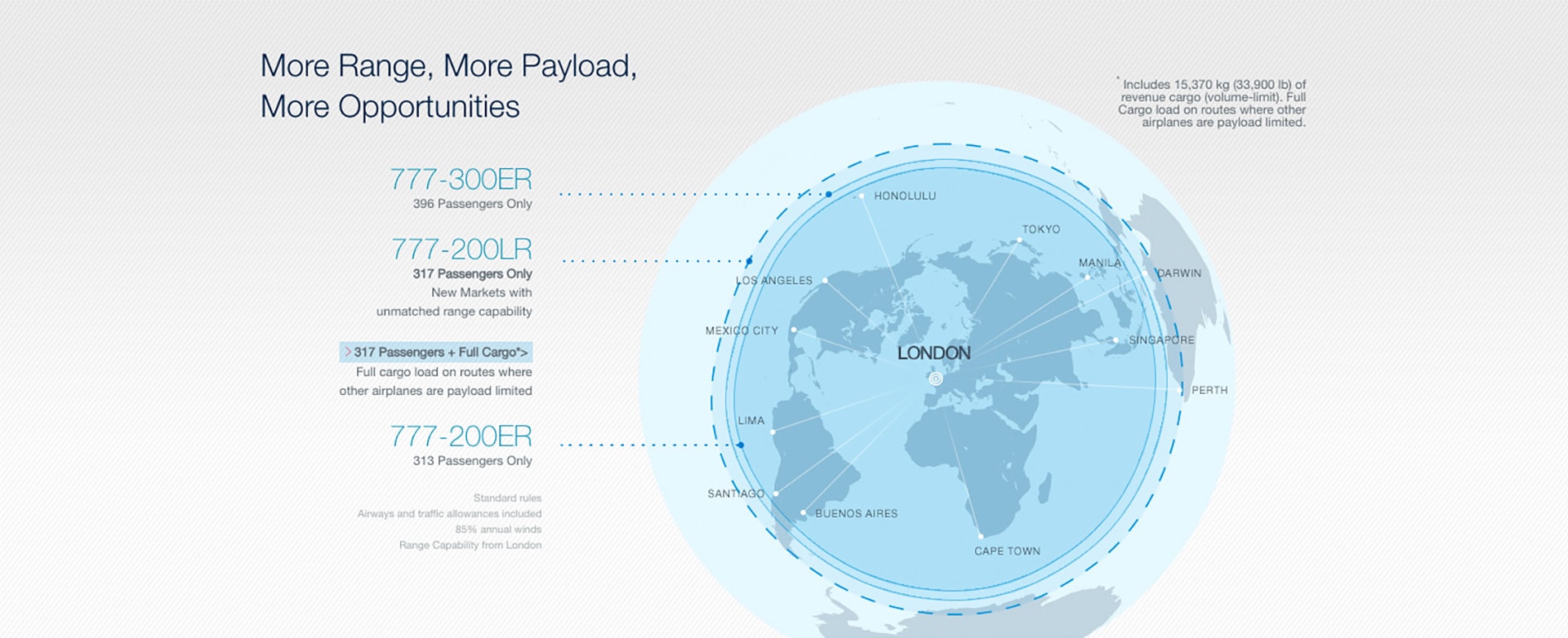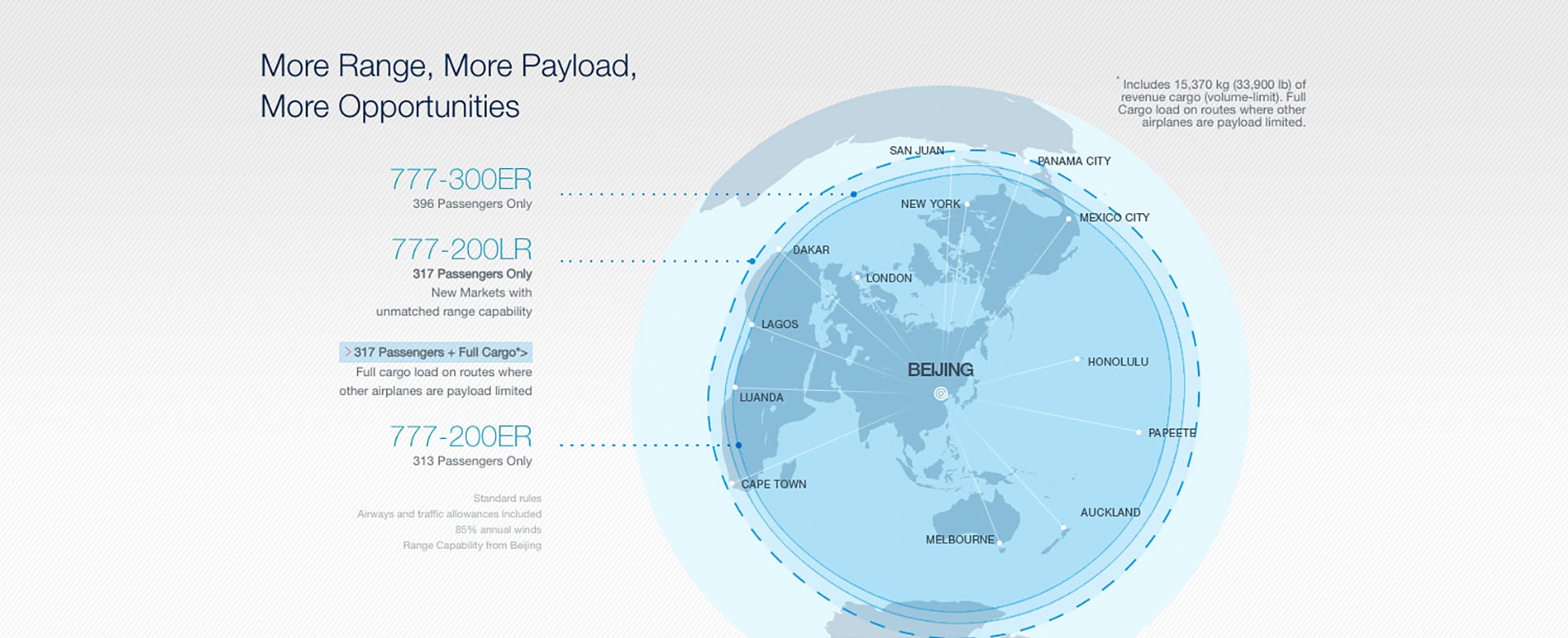 Airlines have only begun to capitalize on demand for point-to-point service in intercontinental markets. The 777 has both the range to fly these very long routes nonstop and the revenue payload capacity to earn a healthy profit throughout the year.